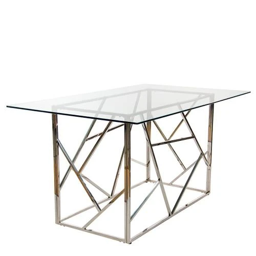 dt1521 стол обеденный стеклянный 150*90 см, столешница 10мм, основание металл хром