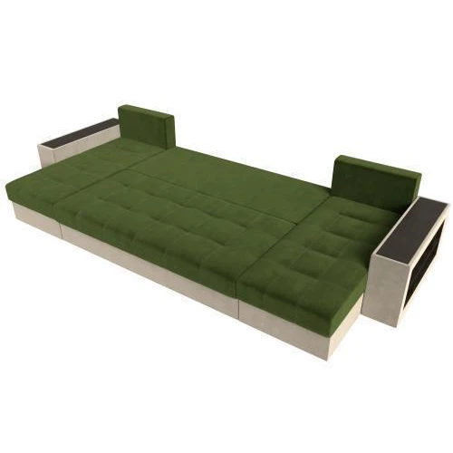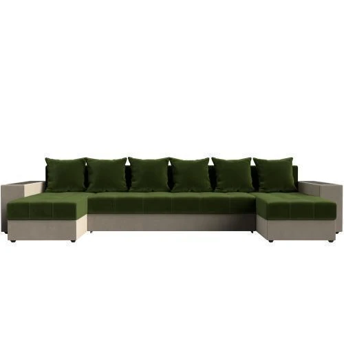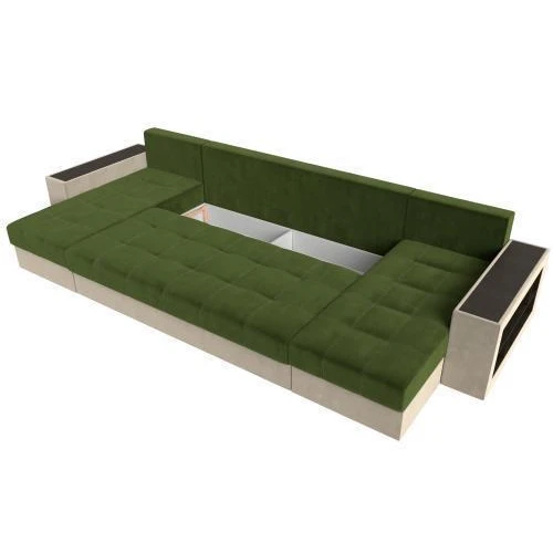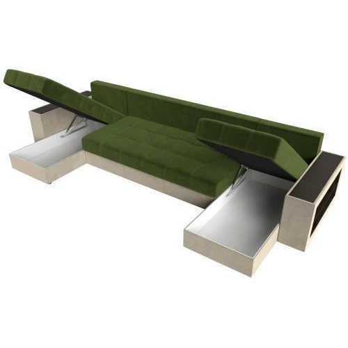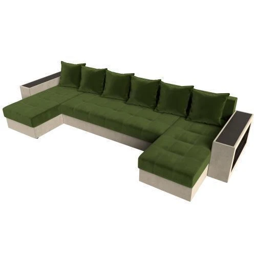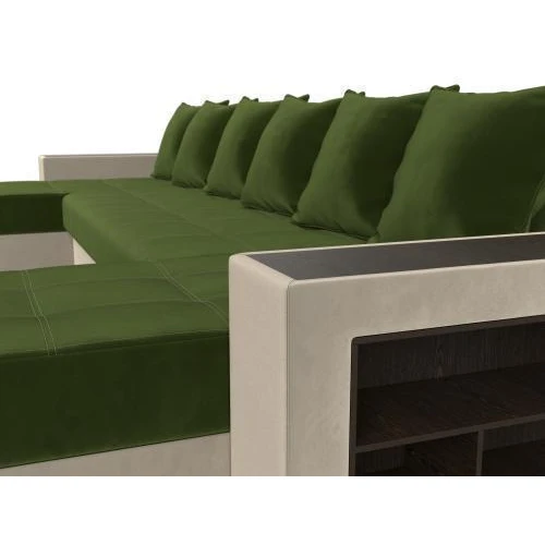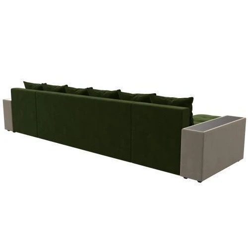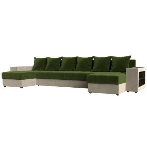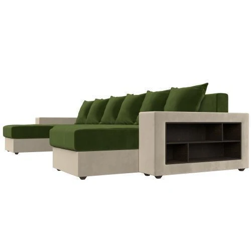 диван п-образный дубай полки справа зеленый\бежевый