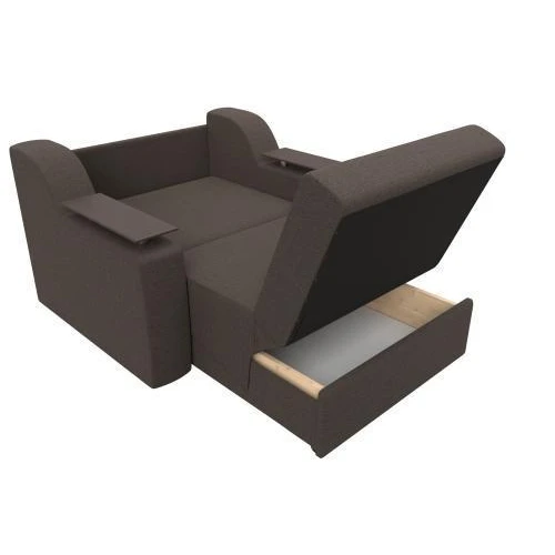 Сенатор – элегантный прямой диван аккордеон с ящиком для хранения белья. Изделие с легкостью раскладывается в комфортабельную двуспальную кровать. Подлокотники дополнены деревянными столешницами, выполняющими функцию мини-столиков.
