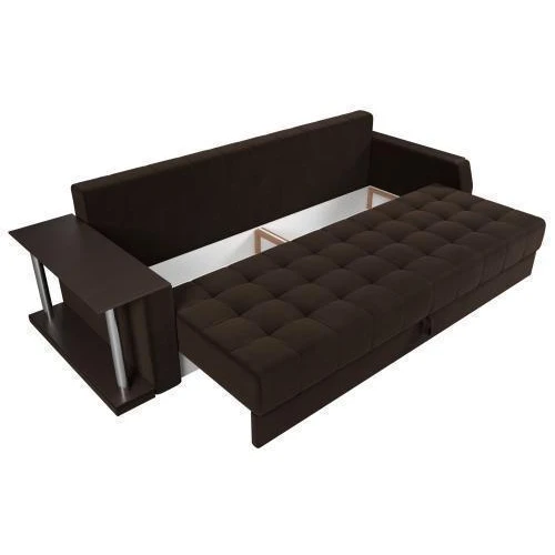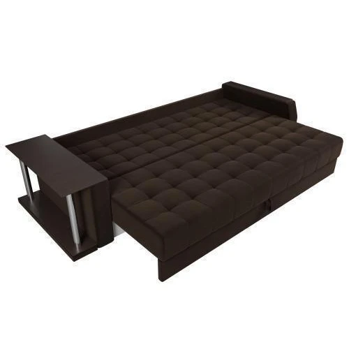 Прямой диван Атлантида со столом выглядит оригинально, при этом функционален в использовании. В считанные минуты, его можно трансформировать в удобную двуспальную кровать.