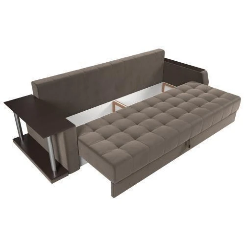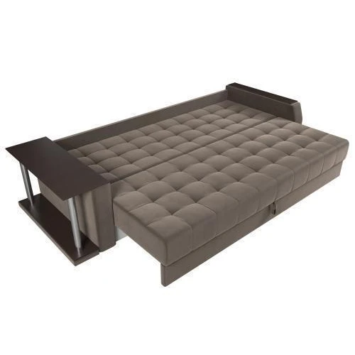 Прямой диван Атлантида со столом выглядит оригинально, при этом функционален в использовании. В считанные минуты, его можно трансформировать в удобную двуспальную кровать.