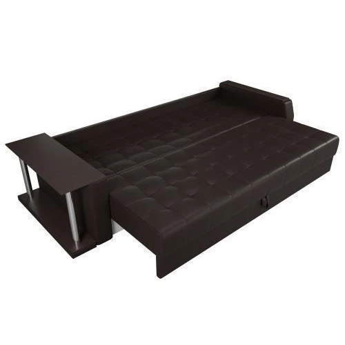 Прямой диван Атлантида со столом выглядит оригинально, при этом функционален в использовании. В считанные минуты, его можно трансформировать в удобную двуспальную кровать.