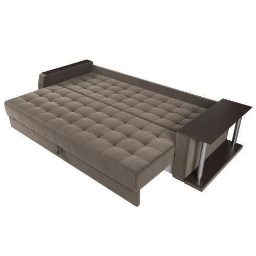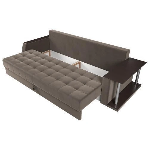 Прямой диван Атлантида со столом выглядит оригинально, при этом функционален в использовании. В считанные минуты, его можно трансформировать в удобную двуспальную кровать.