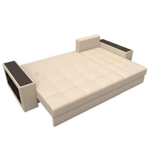 Компактный угловой диван Дубай универсален в использовании. Верх подлокотников – деревянные мини-столики. Сбоку имеются глубокие полочки для хранения предметов декора. Спинка состоит из 5 мягких подушек под цвет обивки. Под угловым и основным сидениями изделия располагаются вместительные ящики для белья.