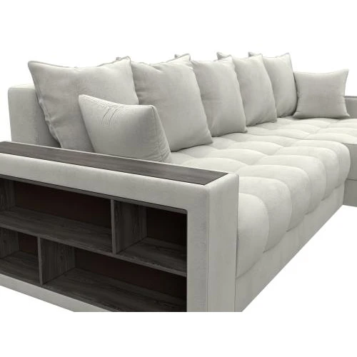 диван угловой с декором и полкой лига-050 нпб tower 01 молочный