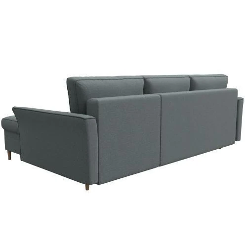 «Лига Диванов» предлагает купить угловой диван София от прямого производителя. Стоимость изделия небольшая, при этом качество высочайшее. Дизайн выполнен в классическом сдержанном стиле. Он дополняется мягкой спинкой из подушек и длинными деревянными ножками, в угловой части расположена вместительная бельевая ниша.