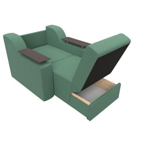 Сенатор – эргономичное мягкое кресло для дома небольших размеров. Модель функциональна, под сиденьем находится вместительный ящик для белья. Подлокотники дополнены мини-столешницами. Конструкция раскладная, легко «превращается» в удобную односпальную кровать.