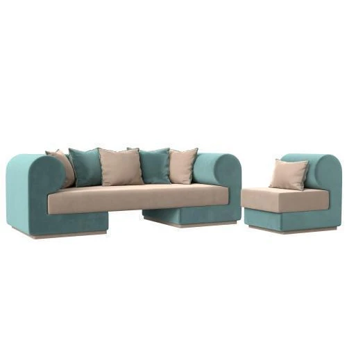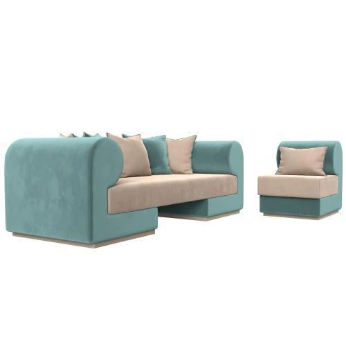 набор кипр-2 (диван, кресло) бежевый\бирюзовый