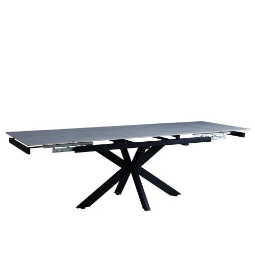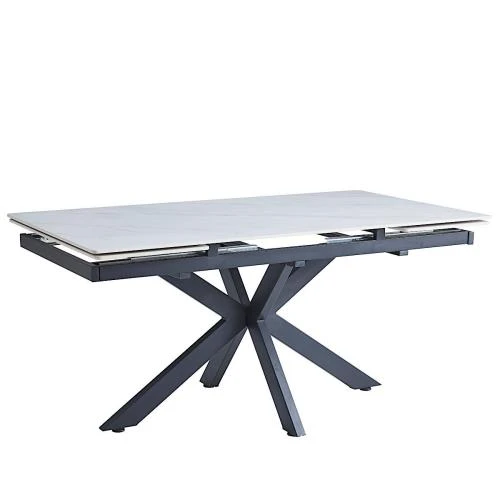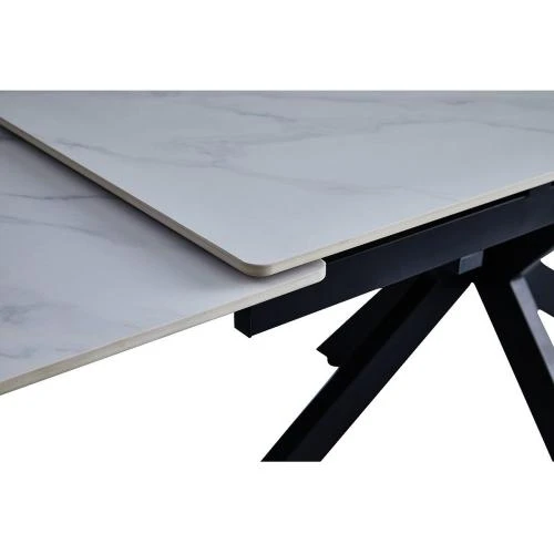 dt757 стол обеденный раскладной snow white, 160-240*90, керамич. столешница, основание металл черный