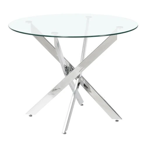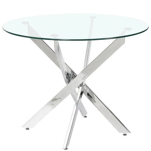 dt631 стол обеденный стеклянный d90, основание металл хром