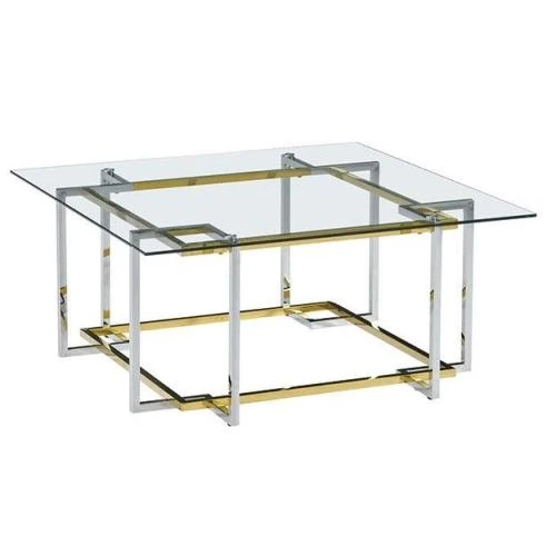 cs-1039-2 стол журнальный стеклянный прозрачный 100*100*45см, основание нерж. сталь хром gold/platin