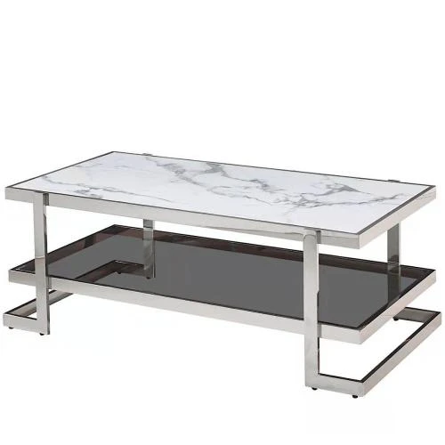 ct-4047 стол журнальный стеклянный мрамор 120*60*45 см, основание нержавеющая сталь хром